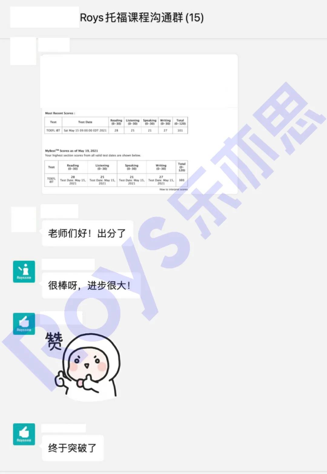 Roys樂亦思托福課程學(xué)員實現(xiàn)89到101的突破